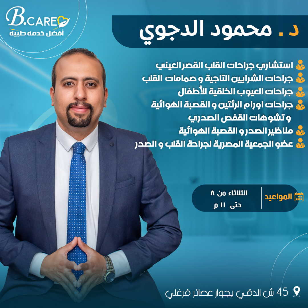 استشاري جراحات القلب والقصر العيني جراحات الشرايين التاجيه وصمامات القلب جراحه العيوب الخلقيه للأطفال جراحات أورام الرئتين والقصبه الهوائيه وتشوهات القفص الصدري مناظير الصدر والقفص الصدري عضو الجمعيه المصرية لجراحه القلب والصدر